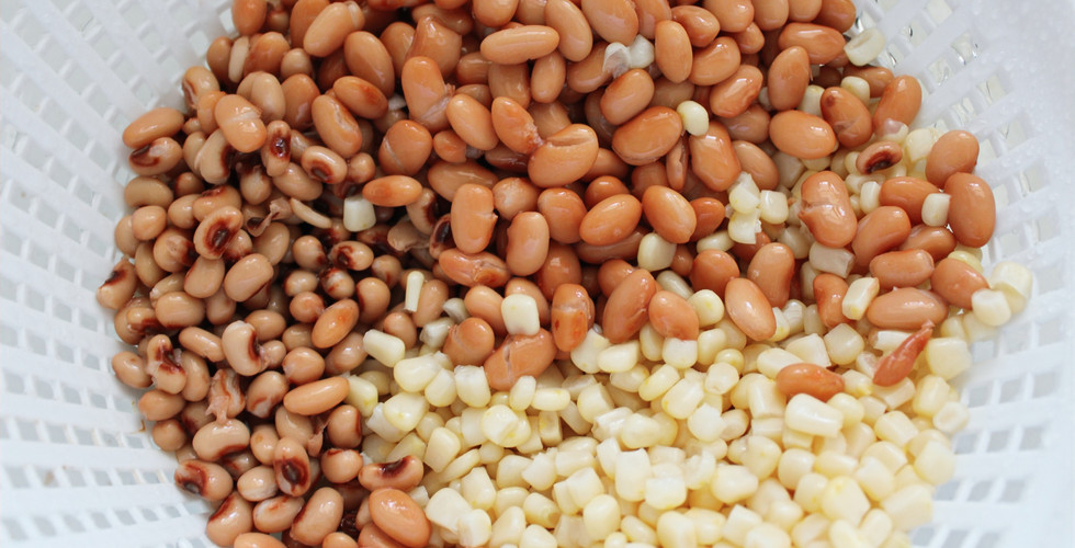 Combine everything except the oil, vinegar and sugar into a large bowl.